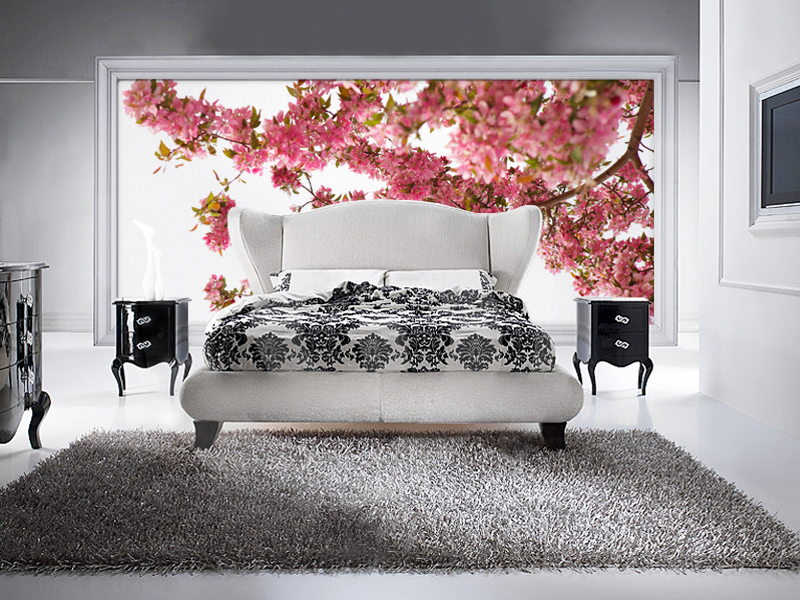 Образцы интерьеров и декора. Панно у изголовья кровати. Как один из приемов - перенесение рисунка с текстиля на печатное панно (холст, обои)